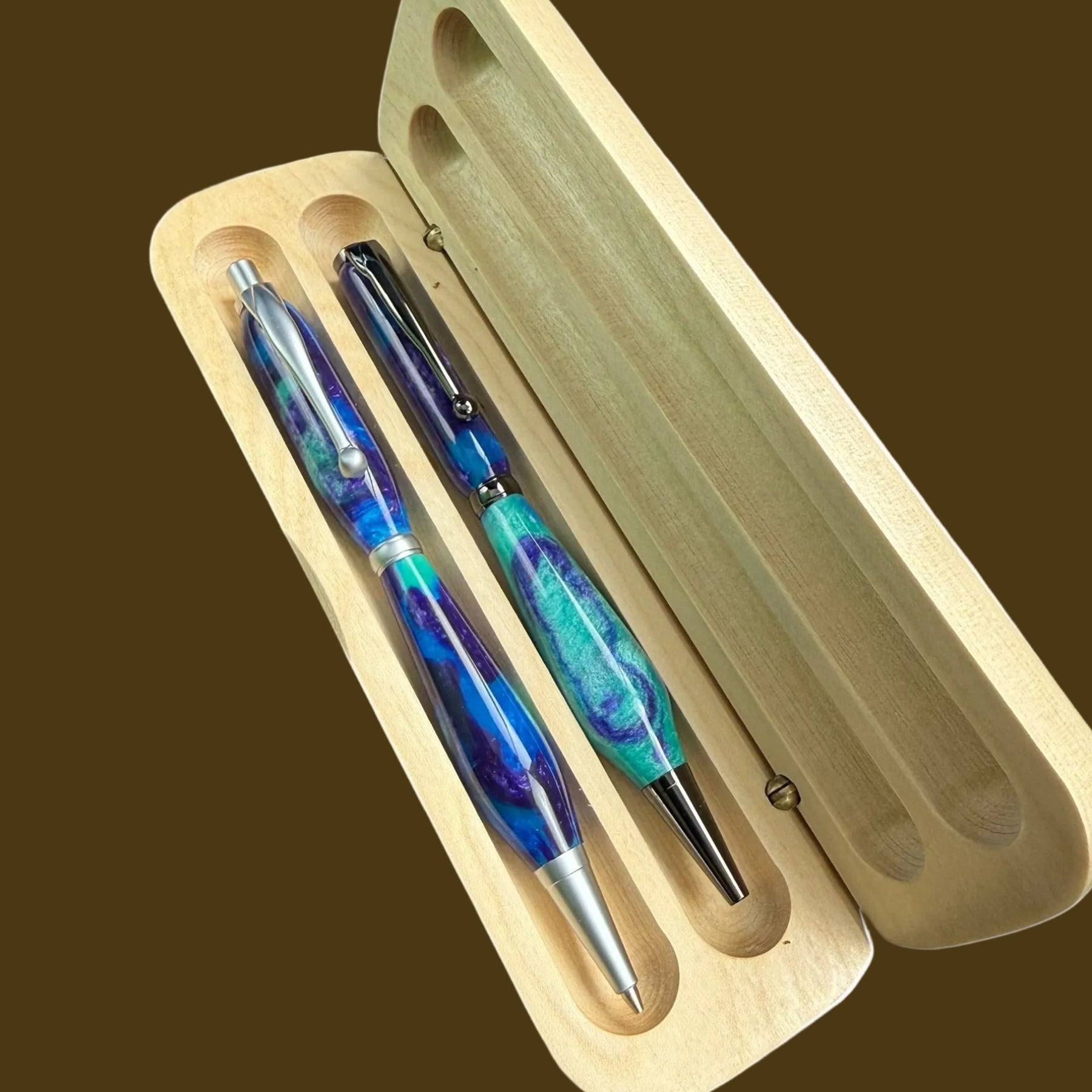 Includes wooden pen case with free laser engraving. Send Laser engraving request to dylan.divergentcg03@gmail.com.