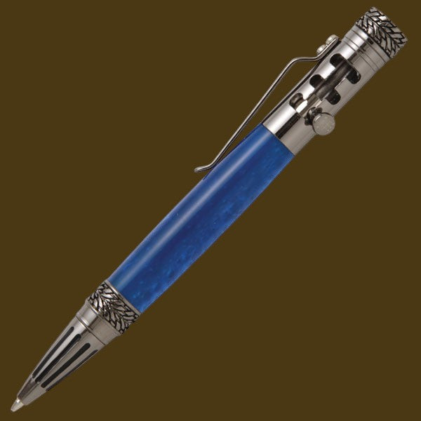 Available in a range of finishes including Chrome, Gun Metal, Antique Brass, and Antique Pewter, each Gear Shift Pen offers a different personality while maintaining the same rugged elegance and craftsmanship. The sturdy pocket clip allows for convenient carry, while the durable construction ensures long-lasting performance.