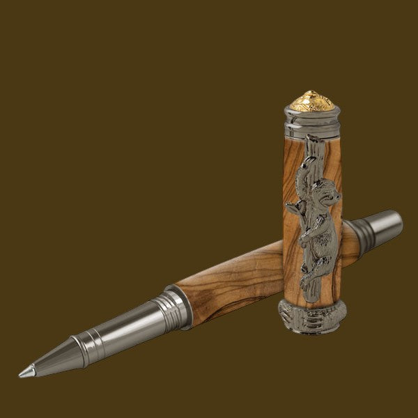 Each pen is individually hand-turned and polished, showcasing the natural beauty and depth of the chosen material. From richly grained woods to vibrant resin blends, every barrel is unique, ensuring no two pens are ever exactly alike. The sculpted sloth detail adds a playful yet refined accent, making this pen as much a conversation piece as it is a functional tool.